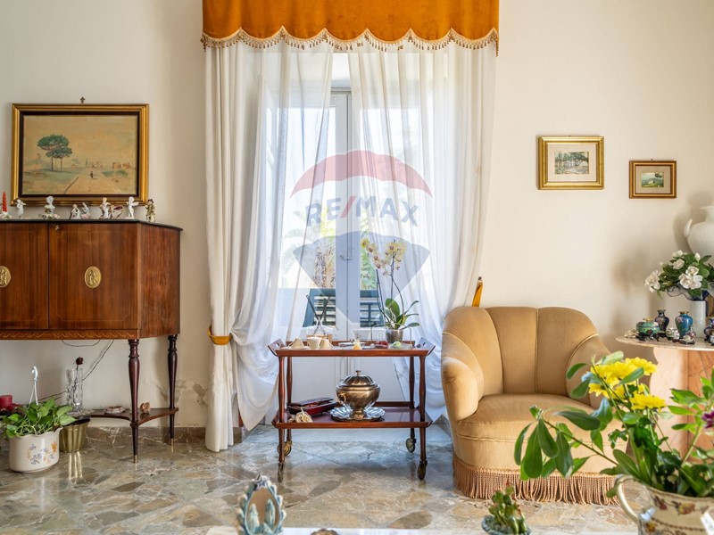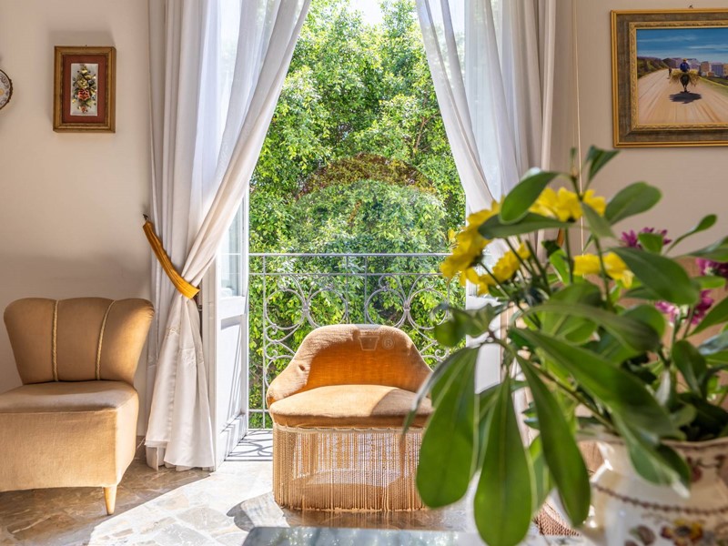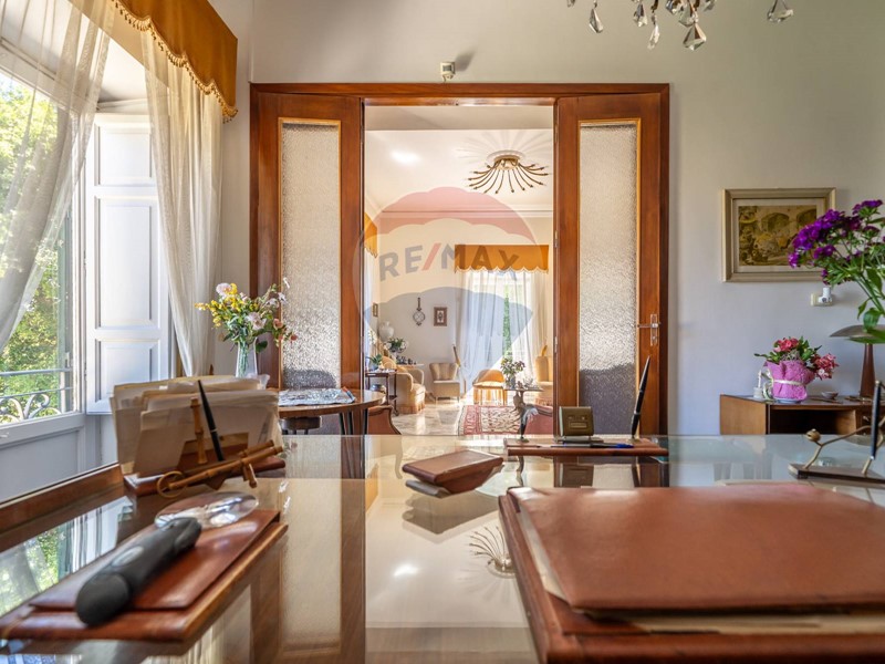 L'immobile ha un salone doppio con annesso studio, con uno magnifico affaccio sul bellissimo giardino comune di pertinenza ricco di alberi prestigiosi e piante mediterranee caratteristiche delle ville di quell'epoca che ci riportano al chiara atmosfera gattopardiana.