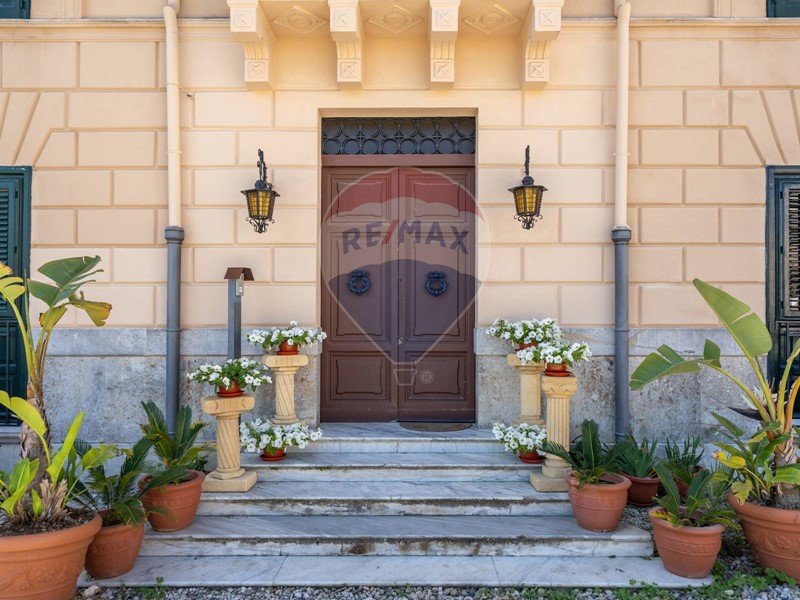 Alla villa si accede da un cancello automatizzato carrabile che consente l'accesso ai comodi posti auto e moto, completa la descrizione dello spazio esterno il giardino di circa 700 mq, quest' ultimo con accesso anche dalla piazza antistante la villa, caratterizzato da piante ornamentali anche ad alto fusto di grande prestigio, bouganvillea, fontane e panchine in marmo che hanno accolto in passato feste e sfarzi della nobiltà dell'epoca.