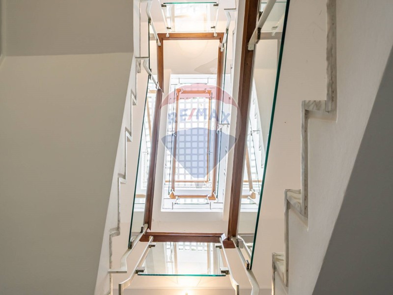 Il pavimento si presenta in alcuni ambienti con marmo a scaglie e in altre con segati di marmo, elemento questo che caratterizza tutti gli ambienti come la bellissima scala condominiale realizzata in marmo di Carrara con balconata in vetro.