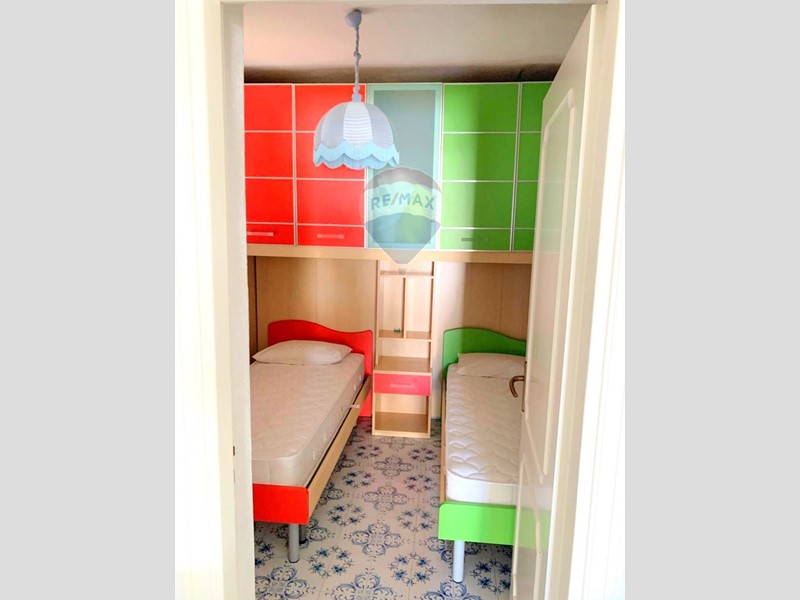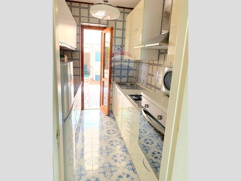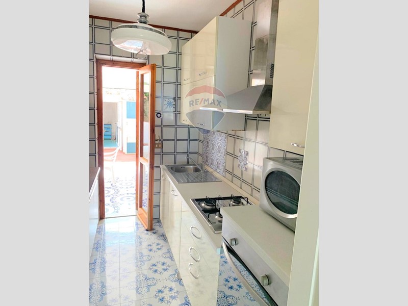 Nella parte superiore del giardino raggiungibile dalla scalinata o dall'ingresso secondario con cancello, troviamo l'incantevole appartamento completamente arredato, di circa 85 mq così composto: ingresso in ampio soggiorno, cucinotto che da accesso al patio esterno con vetrate scorrevoli per ripararsi dalle intemperie, tre camere da letto e bagno.