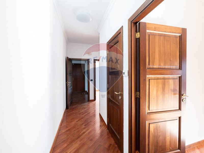 Labitazione si sviluppa su due livelli collegati da una scala interna. Al piano rialzato, lingresso con porta blindata conduce a un ampio e luminoso salone, arricchito da una finestra, una portafinestra e un balcone. La zona notte comprende tre camere da letto, tutte con accesso al balcone, di cui una con bagno privato dotato di doccia. Un secondo bagno, con vasca idromassaggio angolare, e una pratica lavanderia completano il piano, che è impreziosito da una raffinata pavimentazione in parquet di ciliegio, ad eccezione dei servizi.