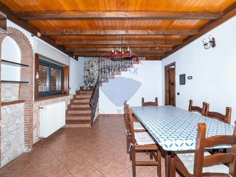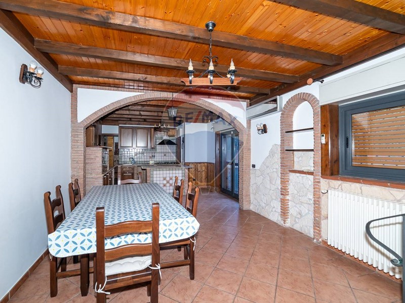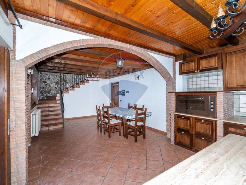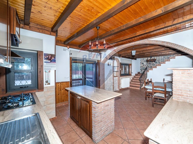 Scendendo al piano terra, si trova unampia sala adibita a cucina, caratterizzata da uno stile siciliano con mobili in muratura e dettagli in legno artigianale che richiamano le bugne delle porte in massello. Il soffitto con travi a vista dona un tocco di calore e autenticità allambiente. La cucina, dotata di un piano cottura di recente acquisto, è illuminata da due finestre e ha accesso diretto alla corte esterna. Completano il piano una camera finestrata, un ripostiglio e un ampio bagno con doccia.