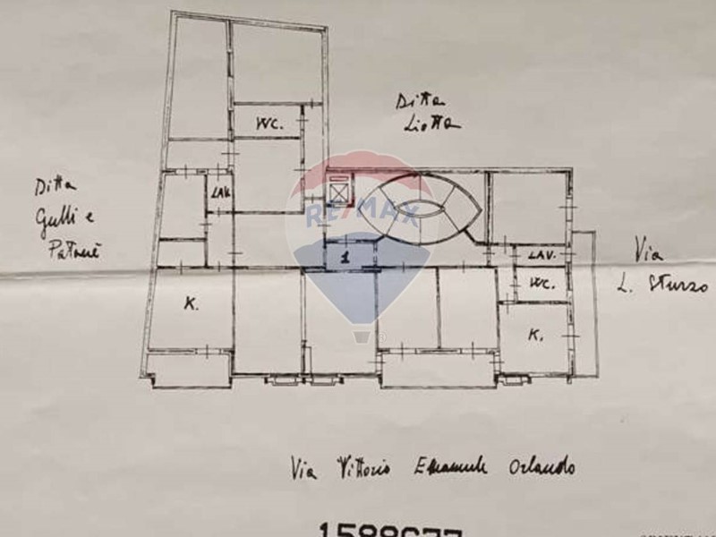 L'appartamento occupa tutta la superficie utile del primo piano dello stabile, ha due ingressi, due corridoi, sette camere, due cucine, due lavanderie, due bagni, un salone doppio, due balconi e un terrazzino verandato.