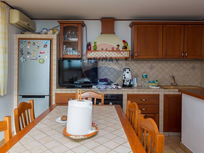 La superficie totale è di 96 mq, distribuiti in: un luminoso soggiorno, due spaziose camere da letto ed una cameretta (tutte balconate), ed il primo bagno, al primo piano; in più troviamo altri 50 mq al piano superiore, comprendenti la cucina, un altro bagno/lavanderia, e lo splendido terrazzo con vista sul mare e su tutta la città.