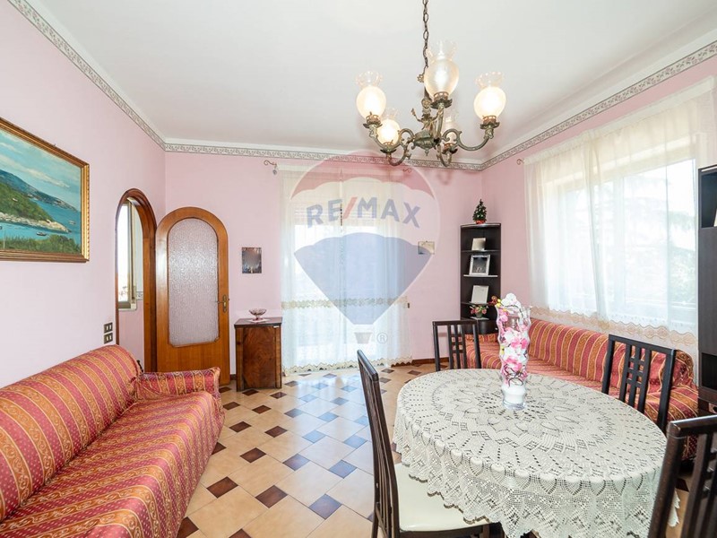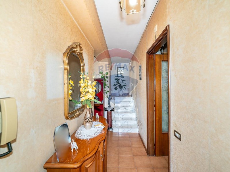Internamente l'appartamento al primo piano è così composto: ingresso su disimpegno, salone doppio con ripostiglio, cucina abitabile, bagno con vasca, lavanderia completa con doccia e servizi, camera da letto matrimoniale, seconda camera da letto.