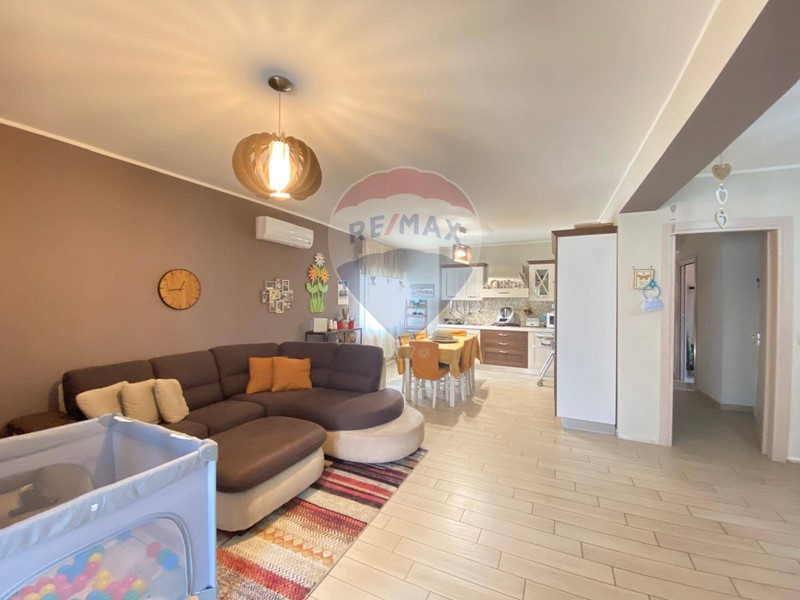 L'immobile, ben disimpegnato, si sviluppa su una superficie calpestabile di 100 mq circa ed è cosi composto: ingresso su open space cucina soggiorno, due camere da letto, servizio, ripostiglio, lavanderia e terrazzo a livello di 35 mq circa.