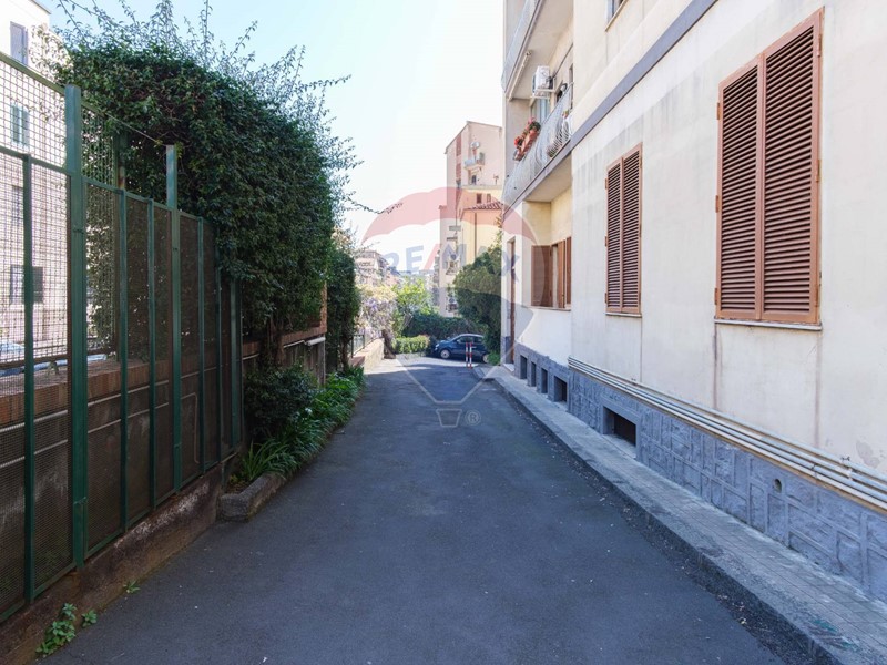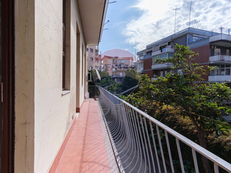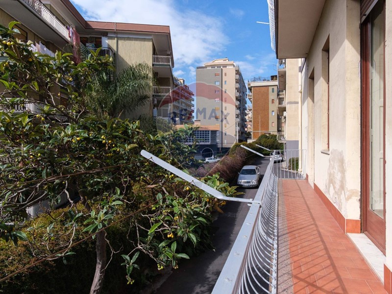 Appartamento di ampie dimensioni, in edificio con strutture murarie portanti in pietra lavica, luminoso, soffitti alti, con affacci su tre lati; lingresso è al piano rialzato, i balconi sul perimetro sono posti al piano primo (la viabilità condominiale è al livello inferiore per via dei garage).