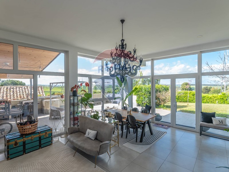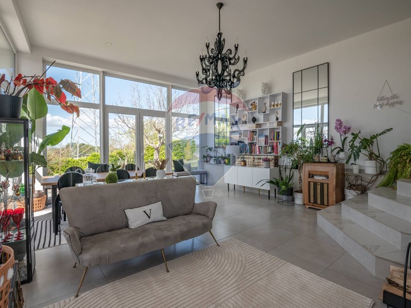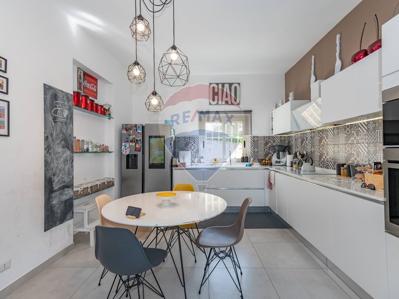 Al piano terra si trova una spaziosa cucina abitabile e un ampia veranda chiusa dotata di termocamino, ideale per godersi una colazione immersa nel verde o per una cena sotto le stelle.