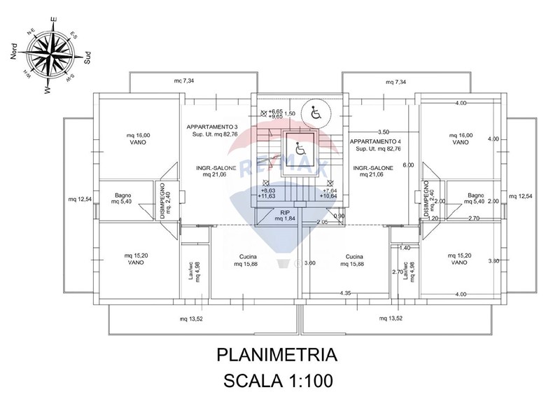 Il palazzo è servito da ascensore e situato in una zona strategica, ben servita e facilmente collegata.