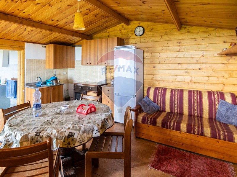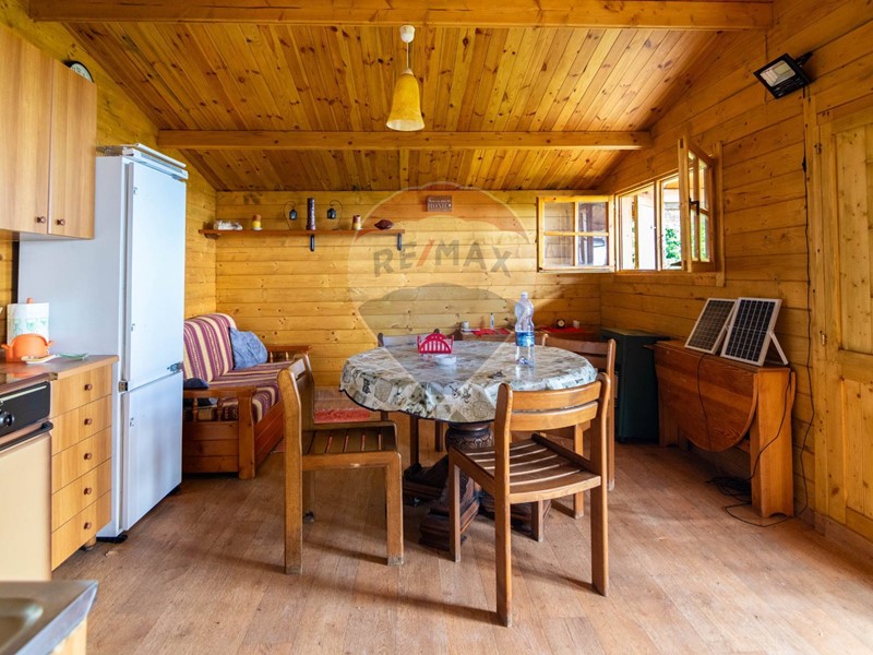 Appena superato il cancello dingresso, troviamo una **deliziosa casetta in legno** posta nella parte più alta del terreno. Curata e ben organizzata, è dotata di una **cucina completa**, **zona relax con divano letto** e un **ampio bagno**, ideale per trascorrere weekend e giornate in totale relax, insieme ad amici e famiglia.