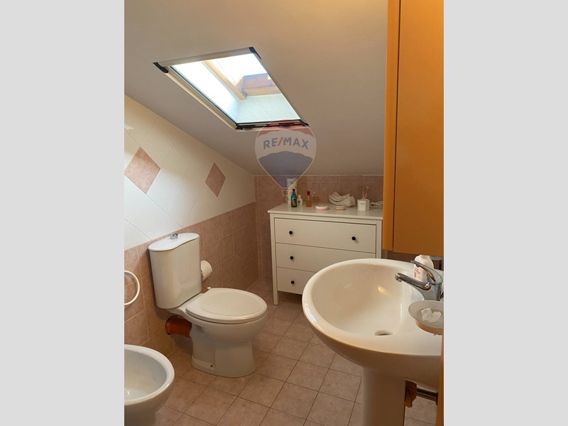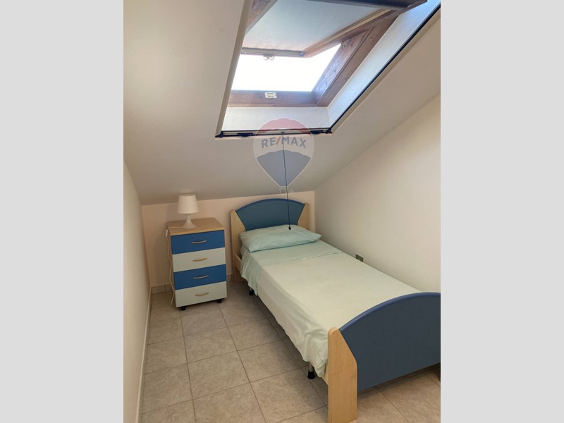 La mansarda da cui si accede da una scala a chiocciola ci porta alla mansarda composta da una camera matrimoniale, due camerette, bagno con doccia e un locale stanzino.
