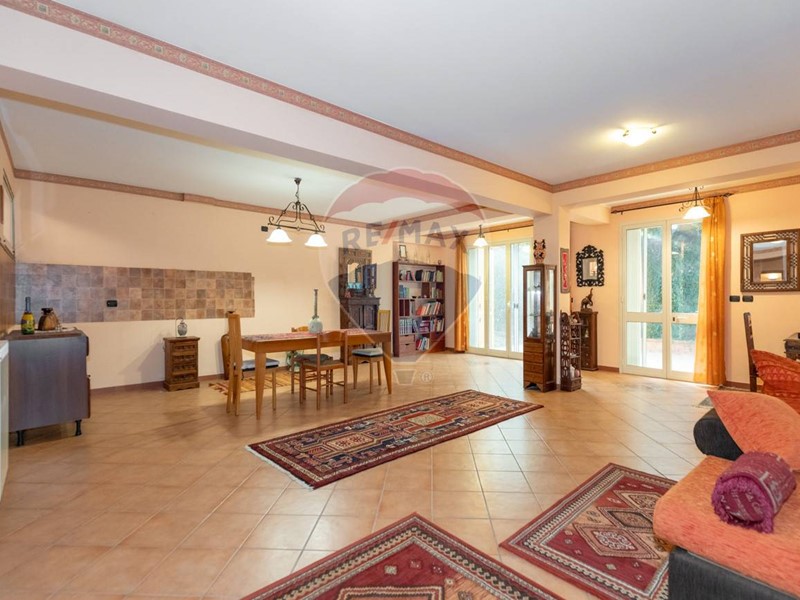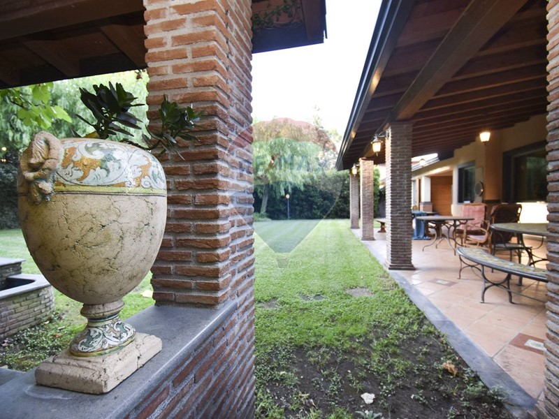 Il grande fascino di questa villa è nellessere totalmente immersa nella natura. Da ognuno dei suoi affacci ci si proietta nel giardino tra alberi e prati. Puoi vedere la natura ovunque, sentirne la presenza, e toccare con mano cosè la campagna. Vi si accede da un viottolo pavimentato che attraversa la parte più formale del giardino, tra file di piante sempre verdi e ad alto fusto. La villa si scopre passo dopo passo con un susseguirsi di piccole e grandi sorprese. È un gioiello adagiato sul prato. In ogni suo elemento compositivo prevale lorizzontalità, con il grande portico lungo lintero prospetto posteriore che realizza una copertura tanto generosa da comprendere una casa allaperto, con la sua zona giorno per il pranzo, le sedute, e il barbecue li accanto. Il folto degli alberi nel giardino allingresso trova il contrappunto sul lato opposto della villa nellampio parterre tenuto a prato. I materiali da costruzione e rivestimento delledificio sono stati scelti tra i più caldi, come lintonaco tradizionale di colore albicocca con inserti in mattoni rossi, gli stessi utilizzati per il portico, e il legno delle travi a vista. Linterno dellabitazione è, sotto il profilo funzionale, un insieme di tradizionale e contemporaneo, con la presenza di una zona di disimpegno che distribuisce gli spazi e immette nellopen space che contiene cucina e soggiorno. Lambiente giorno si protende nel giardino, dove trova il suo prolungamento negli spazi porticati allaperto. Al piano ci sono anche quattro camere, due servizi e lavanderia, che rendono la zona notte flessibile ad ogni uso. La luce che da fuori piove allinterno ammorbidisce ogni dettaglio. Il piano seminterrato comprende unampia cantina e altrettanto grande garage. Linterno si contraddistingue per i colori tenui delle pareti e gli infissi in legno di eccellente qualità. La villa è immersa nei suoni della campagna, in unatmosfera di completo relax. La proprietà ha una dimensione agreste, con la presenza di oltre ottanta piante da frutto, ulivi e una vigna con circa cento viti di uva da vino e da pasto. Piante da fiore in larga parte del giardino rallegrano il tutto facendo percepire e rendendo evidente il mutare delle stagioni. La villa è dotata di impianto fotovoltaico da 5 kW. Vieni a respirare laria salubre di questo luogo.