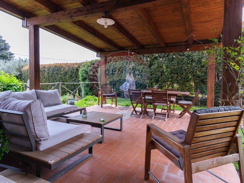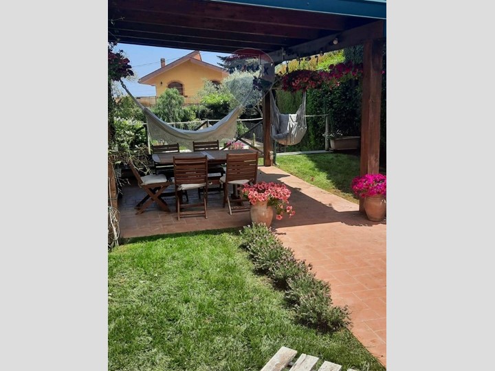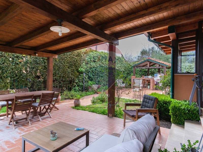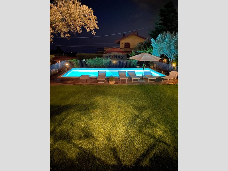 Il giardino, estremamente curato, ospita una splendida piscina di 10x5 metri completa di copertura, sei alberi di ulivo, due limoni, un pesco, un mandorlo e un pompelmo. È presente anche una zona recintata per cani con casotto in muratura.