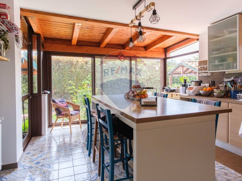 Al piano terra troviamo un ampio e accogliente salone con camino, una luminosa cucina abitabile con grandi vetrate che si affacciano su un patio coperto da tettoia, ideale per pranzi e cene allaperto. Completano la zona giorno una camera da letto e un bagno. Sempre al piano terra, allesterno, si trova una zona barbecue coperta, perfetta per momenti conviviali.