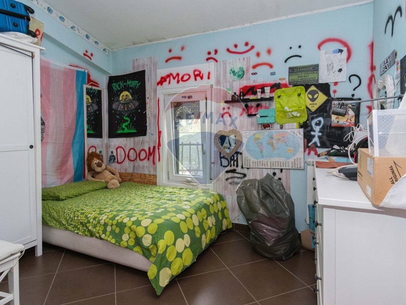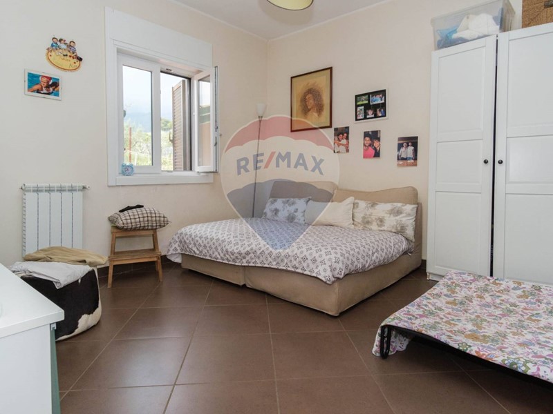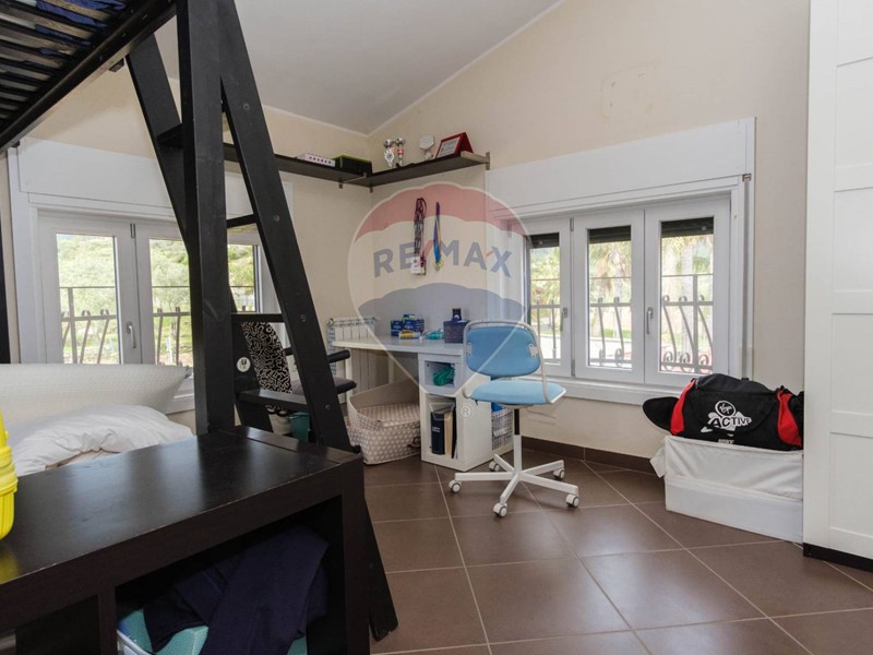 La zona notte si sviluppa al primo piano, accessibile tramite una scala interna che conduce a tre camere da letto e due bagni, entrambi con doccia. La camera padronale è dotata di cabina armadio e gode di un terrazzo panoramico con vista mozzafiato sullo Stretto di Messina e la Calabria. Le altre due camere offrono una splendida vista sullEtna.
