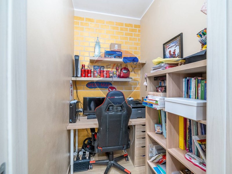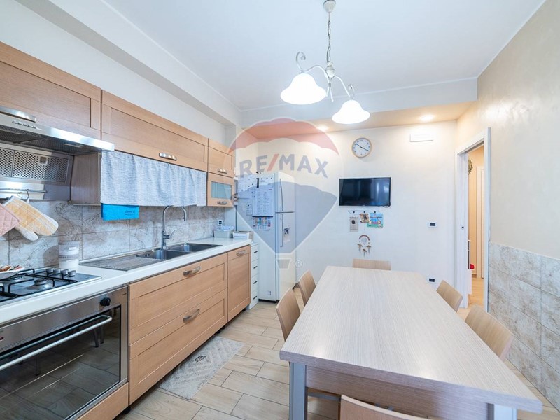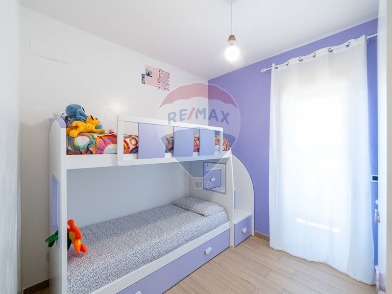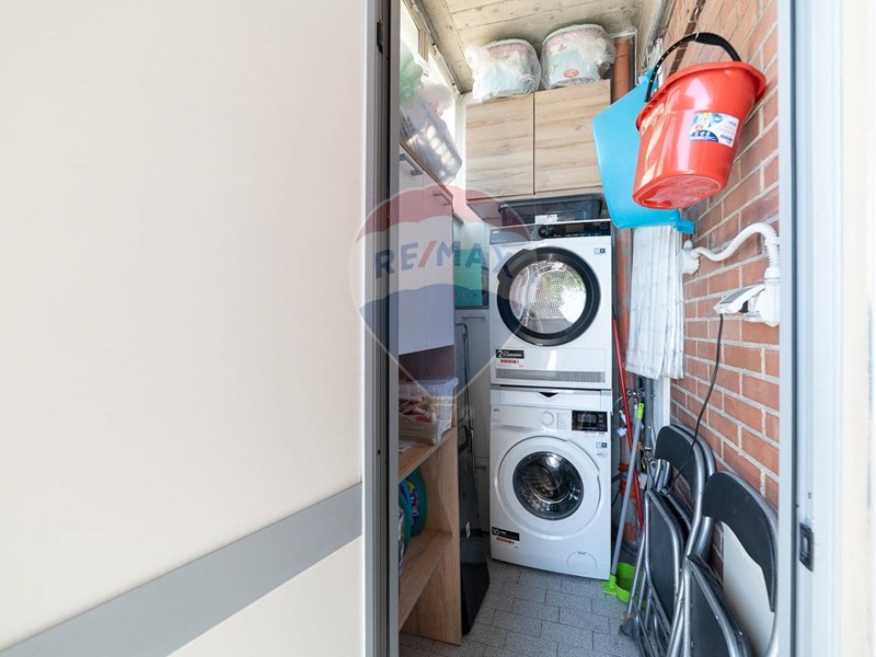 L'appartamento è composto da un ingresso su un comodo salone, cucina, ripostiglio, disimpegno, due camerette, una camera matrimoniale, bagno di rappresentanza e lavanderia esterna.