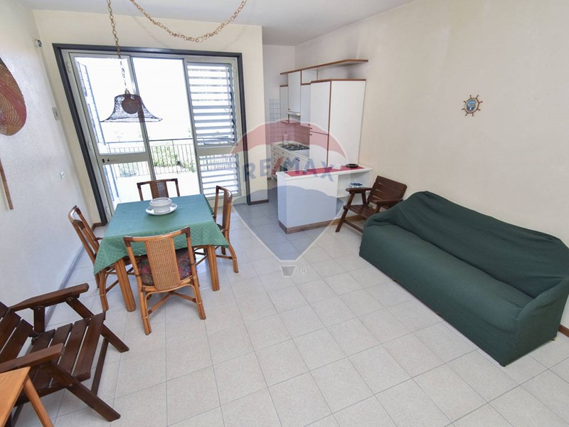 L'appartamento è posto al 1° piano catastale (secondo di fatto) e dispone di un ampio terrazzino di una decina di metri con affaccio sul mare, dal si accede in un ampio living con angolo cottura totalmente attrezzato, completa l'appartamento un'ampia camera da letto con terrazzino con vista sul Monte Etna e il bagno.