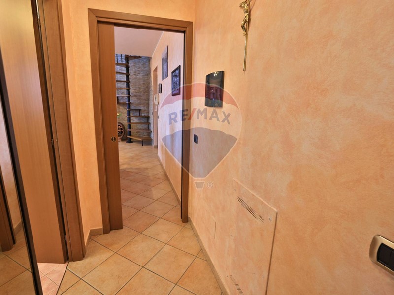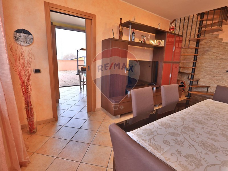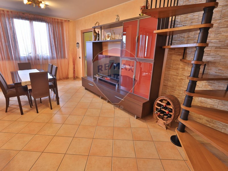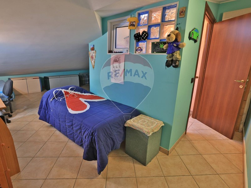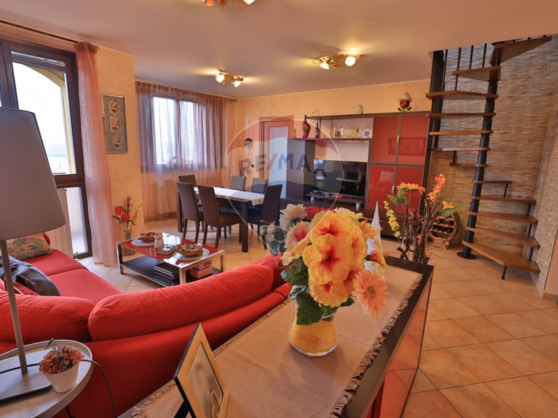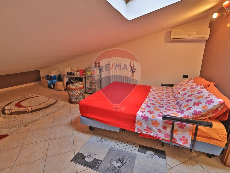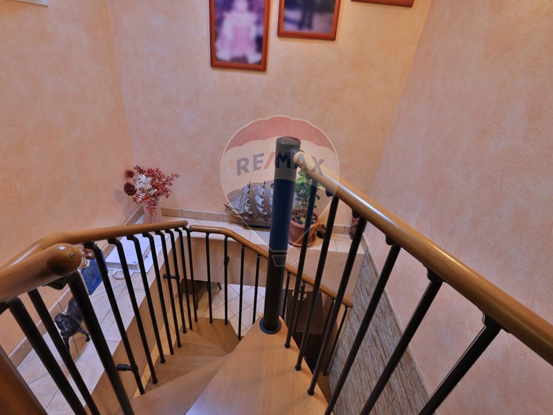 Dal soggiorno una comoda scala a chiocciola conduce al piano superiore, dove si trova il locale mansardato. La zona notte comprende la camera da letto e un bagno finestrato; è inoltre presente un balcone accessibile sia dal soggiorno che dalla camera.