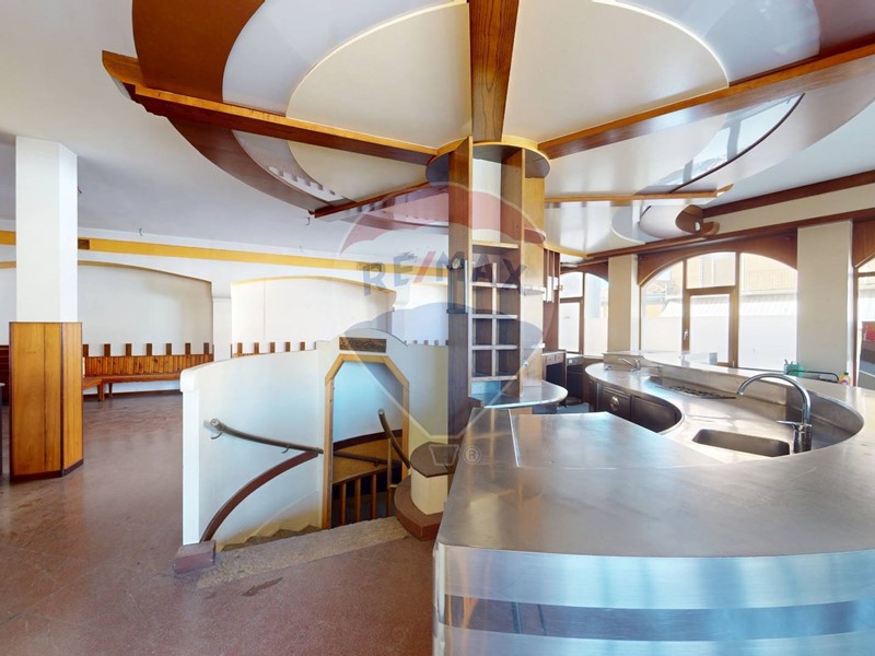 Al piano rialzato troviamo larea principale, perfetta per laccoglienza clienti e la zona somministrazione. Una scala a chiocciola molto larga, dal forte impatto estetico e funzionale, collega i vari livelli dellimmobile: