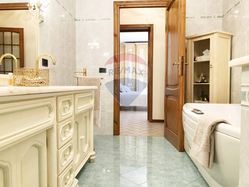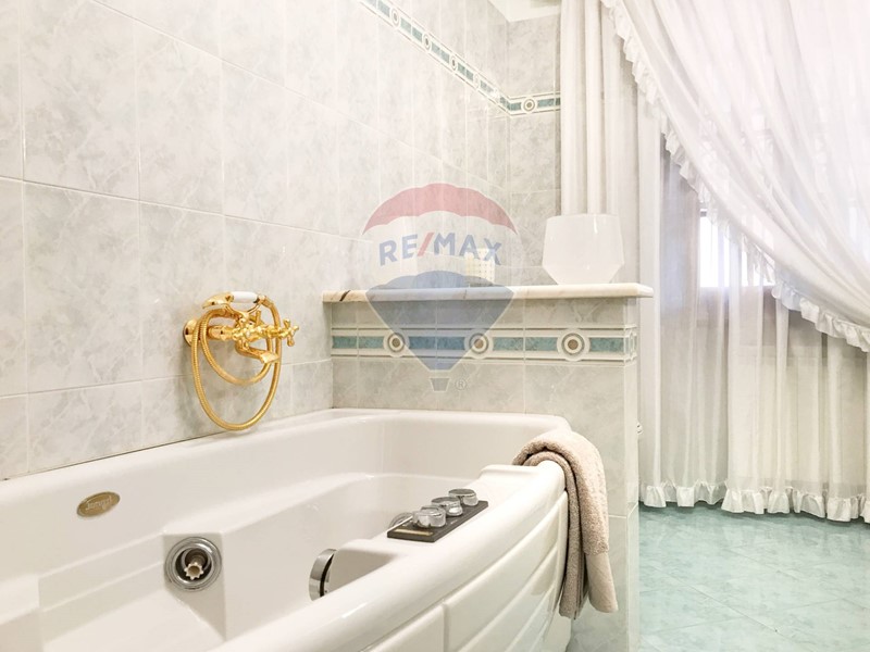 Al piano primo, collegato mediante ampia scalinata, troviamo salotto per lettura con divani, 3 camere matrimoniali di cui una con balcone vista mare, e una cameretta, il secondo bagno con vasca.