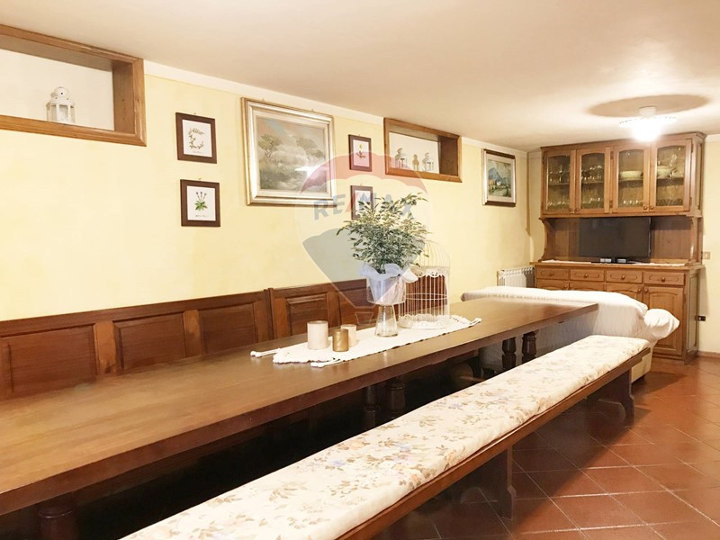 Il piano terra tramite scala ci collega alla taverna, la taverna è una grandissima sala con due tavoli da pranzo, con cucina e forno a legna.