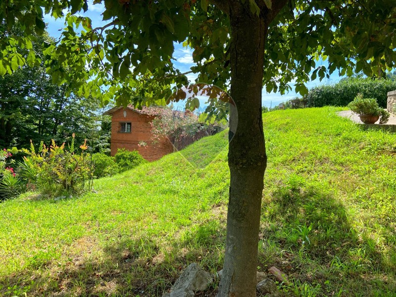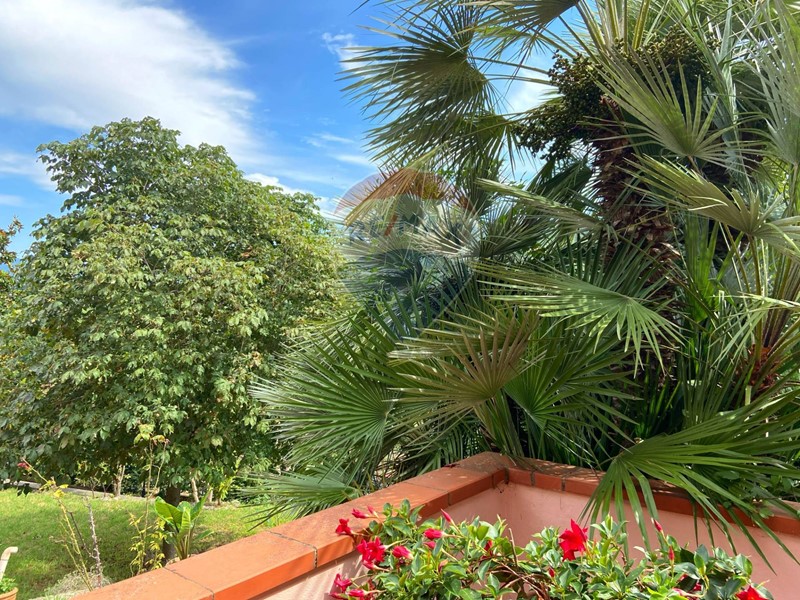 Un bellissimo giardino piantumato, con terreno parzialmente terrazzato che crea zone relax e solarium. E' possibile realizzare una piscina.