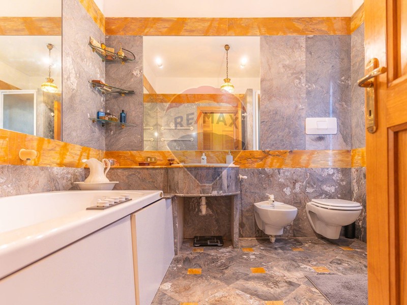 Al piano terra si trovano i locali principali, tra cui un luminoso e spazioso salone, zona pranzo entrambi con camino, cucina attrezzata, locale dispensa, camera matrimoniale con cabina armadio e bagno privato, due studi, servizio padronale, armadi a muro tutti dotati di impianto a radiatori o pannelli radianti per garantire il massimo comfort in ogni stagione.
