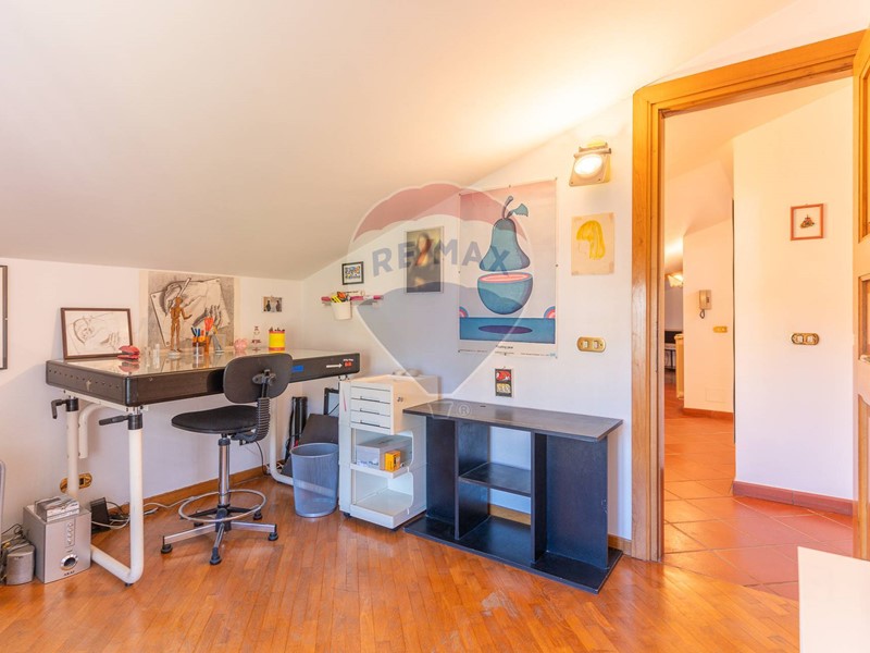 Salendo al piano sottotetto o piano mansarda troviamo altre due stanze, uno studio e un ampio bagno ideale per ospitare amici o parenti in visita.