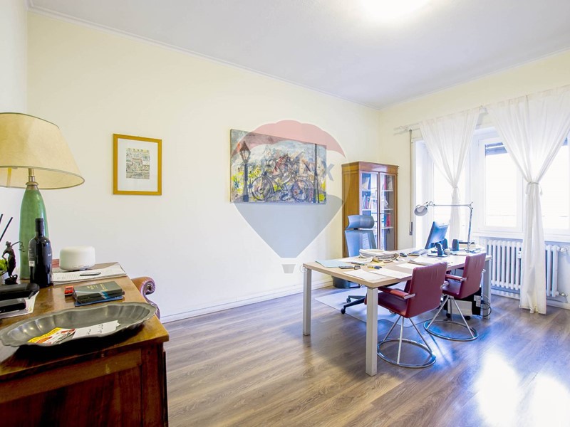Di ampia e comoda metratura, taglio molto aristocratico, grande rappresentanza, anche se è stata ricavata una camera in più dal salone che in origine era doppio. Attualmente l'immobile è utilizzato come studio privato, suddiviso in sei grandi ambienti. Composto quindi da ingresso arredabile, salone, quattro camere tutte matrimoniali, cucina, due grandi bagni, una cameretta/studio. Un doppio disimpegno divide la zona giorno da quella notte.