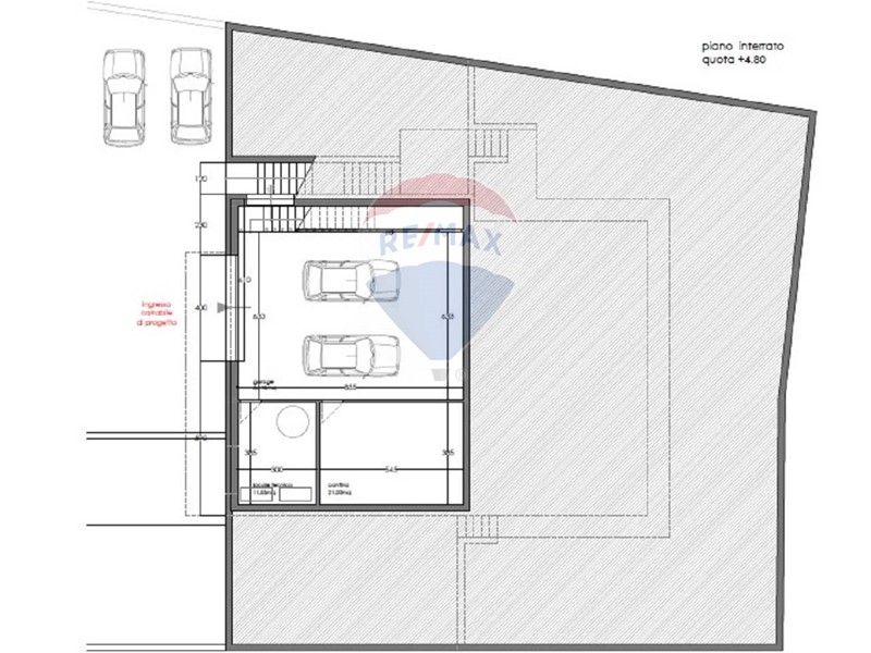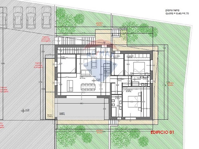 L'edificio è previsto su una superficie di 154 mq circa lordi al piano terra e circa 93 mq seminterrati così suddivisi: