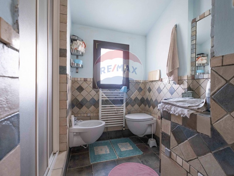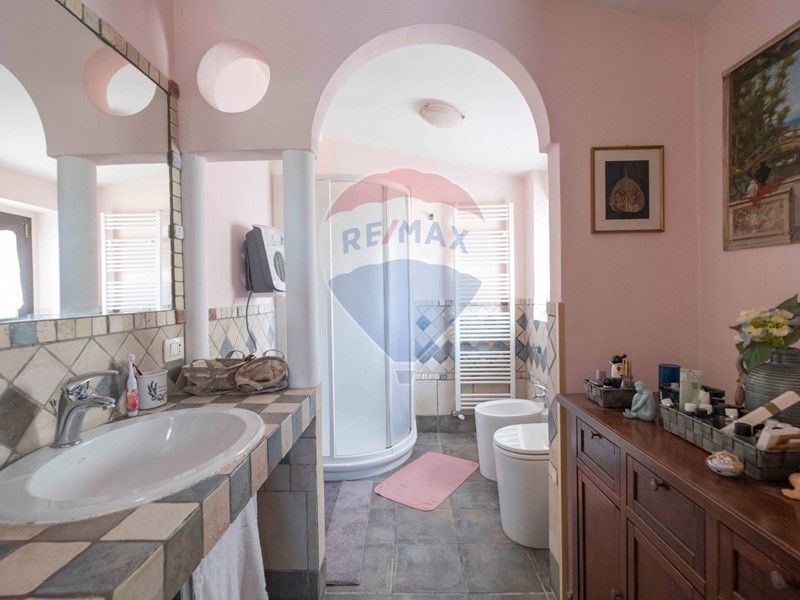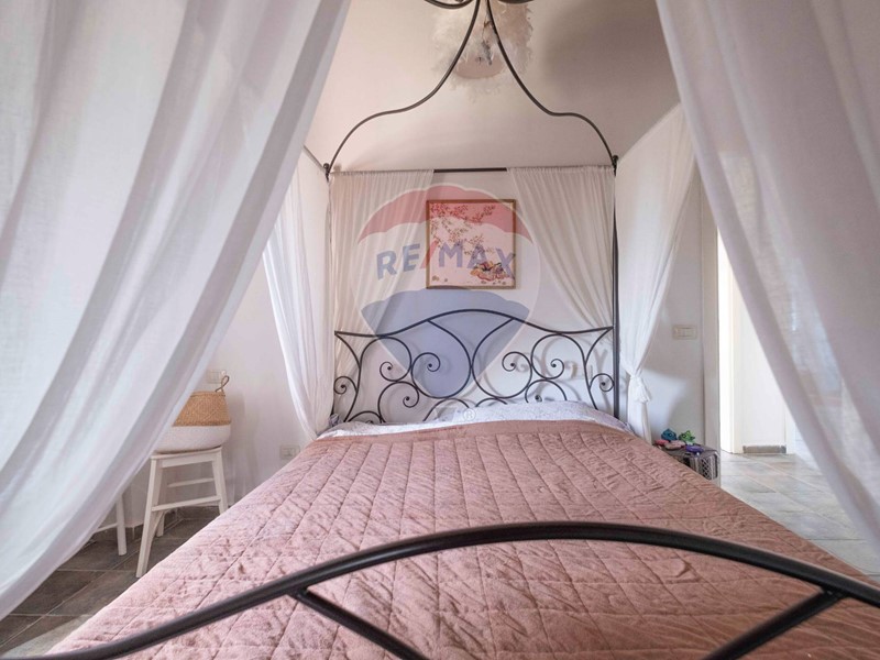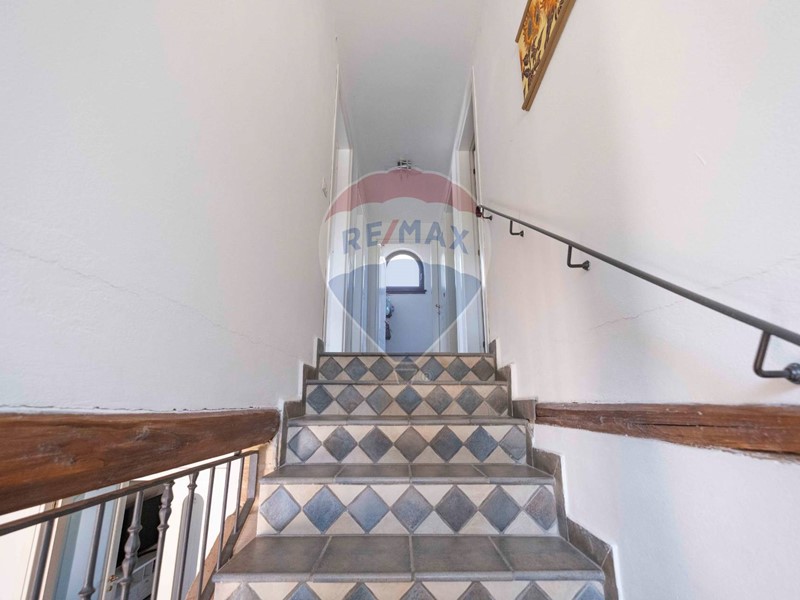 Sempre dall'ingresso sulla destra, una bella scala decorata, ci accompagna al primo piano, dove ci accolgono due camere matrimoniali ed una cameretta tutte con cabina armadio, un bagno con vasca e per concludere una bella camera matrimoniale padronale, con bagno comunicante. Sulla corte esterna insiste un garage di 45 mq completamente ristrutturato, da completare solo per gli infissi e la porta di ingresso.
