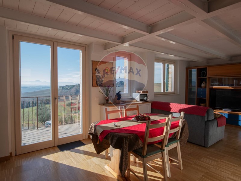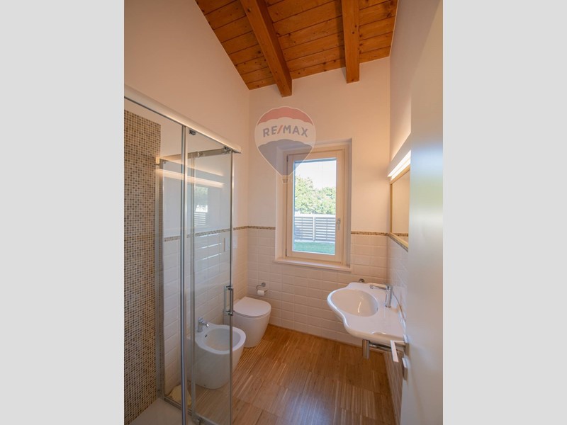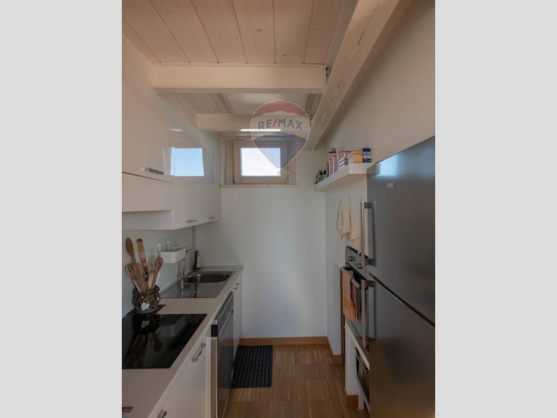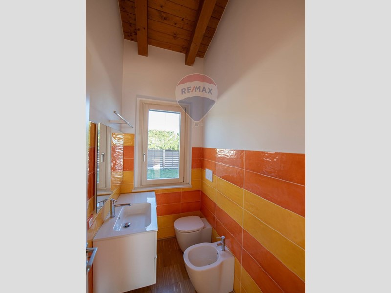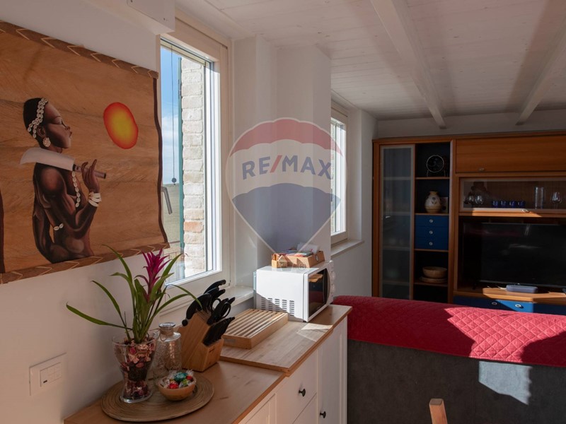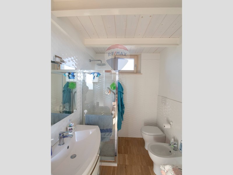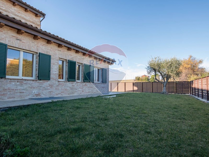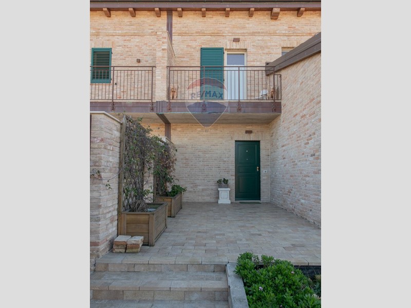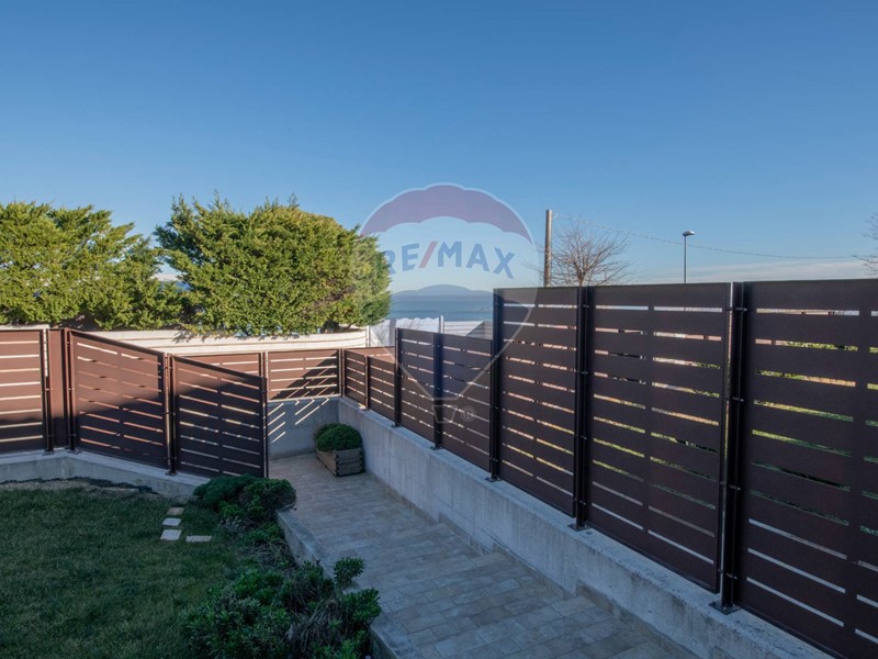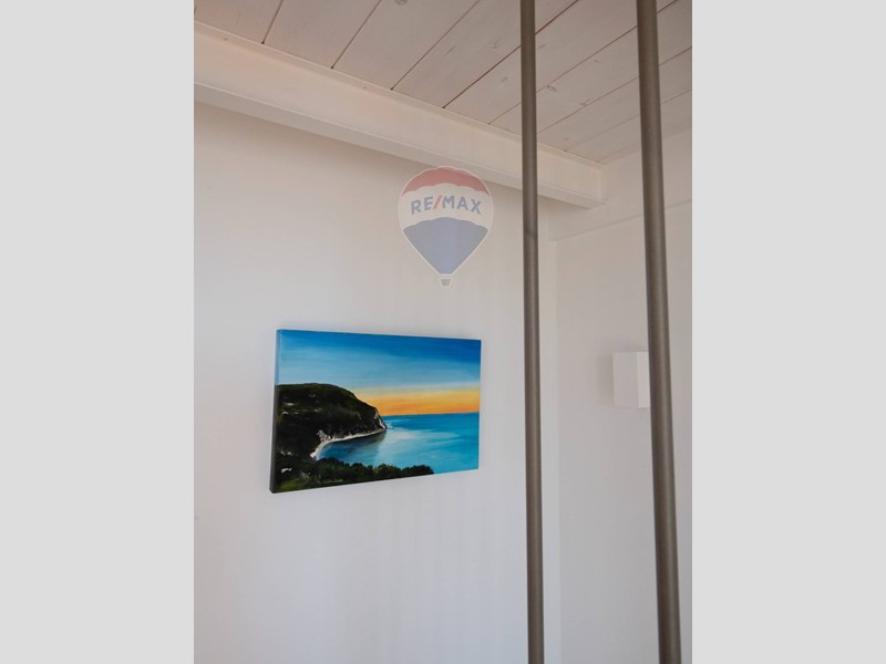 Al piano terra si sviluppa labitazione principale composta da soggiorno con cucina a vista, splendida terrazza dotata di pergola, meraviglioso giardino con affaccio sul golfo di ancona, tre camere e due bagni.