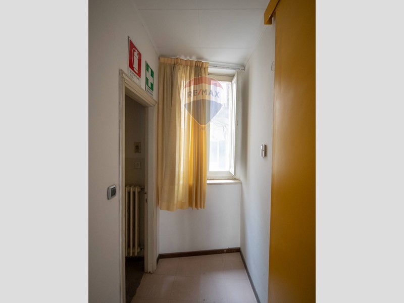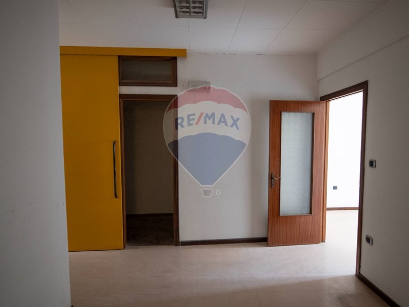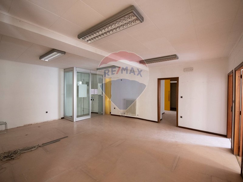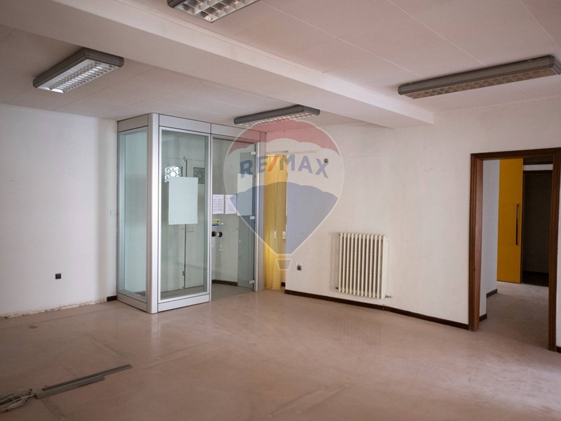 Internamente troviamo un ingresso direttamente nel locale più grande, dotato di funzionale balcone coperto; proseguendo troviamo altri tre uffici separati, tutti con affaccio sulla Piazza Comune, ed un disimpegno che conduce al ripostiglio con locale tecnico e ad un bagno finestrato.
