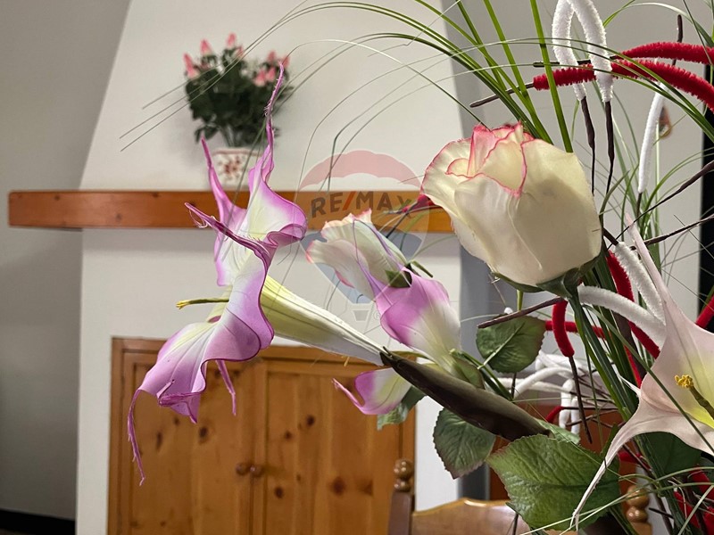 In cima la scala che da accesso al primo piano è presente una bella terrazza vivibile, coperta, da sfruttare come zona conviviale e l'ingresso dell'abitazione che misura circa 125 mq e si compone di un soggiorno con camino, una cucina abitabile, un bagno, tre ampie camere da una delle quali si accede alla soffitta e il ripostiglio.