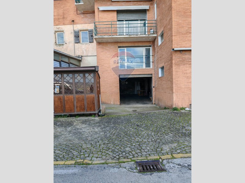 Passando da Via Sisto V sotto le mura abbiamo accesso allo stabile dove troviamo locale magazzino (BOX) auto che tramite scala interna da accesso ai due piani soprastanti del negozio