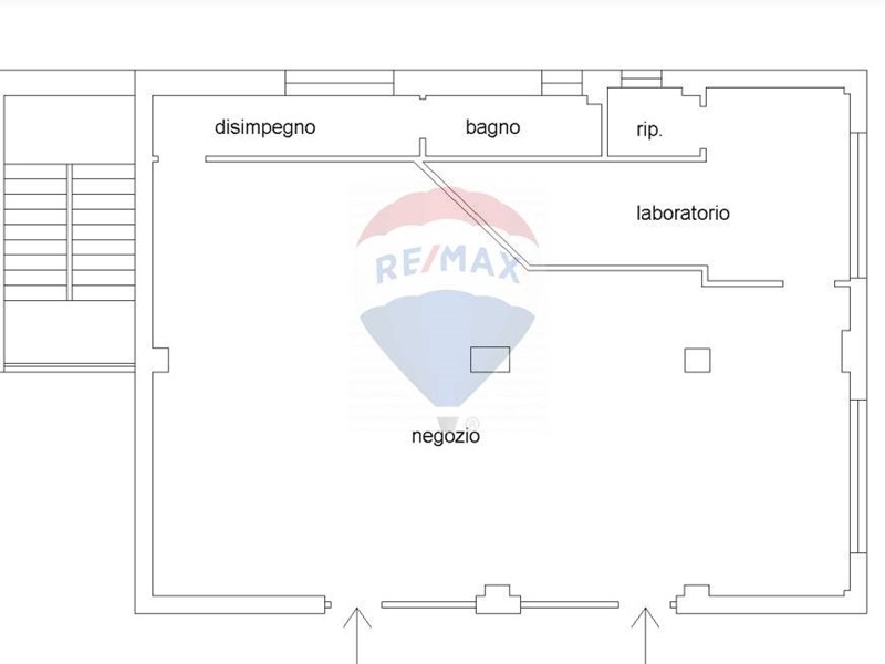 L'immobile è situato al piano terra con doppio ingresso indipendente dall'edificio, è di circa 104 mq commerciali, ha un ingresso in un unico ampio vano, un bagno e un altro vano adibito a laboratorio.