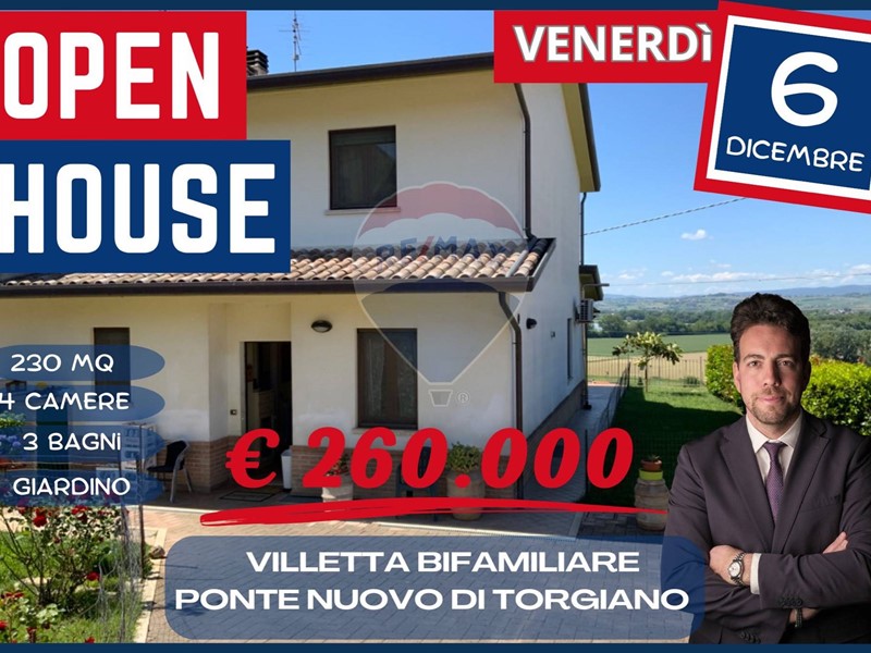Nella zona alta di Pontenuovo di Torgiano, in vendita una bellissima villetta bifamiliare del 2004 in ottimo stato di conservazione.