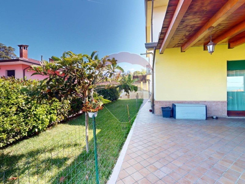 lo spazio esterno in parte lastricato e in parte con prato e fiori ben curati è disposto su tre lati della casa, ideale per trascorrere momenti di relax in famiglia e con amici, completamente recintato con cancello automatico carrabile.