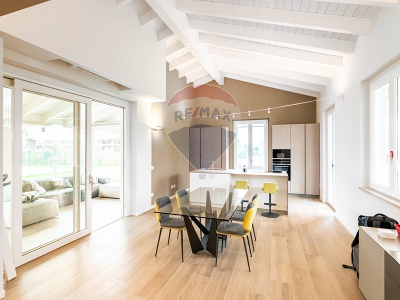 In una zona tranquilla e circondata dal verde, proponiamo in vendita una villa unifamiliare di nuovissima costruzione, acquistata nel novembre 2023. La proprietà si sviluppa su un lotto di 2.345 mq e offre una superficie complessiva di 260 mq, di cui 210 mq coperti, distribuiti su due livelli pensati per garantire funzionalità, luminosità e ampi spazi vivibili. Il giardino privato, esteso e curato, rappresenta il luogo ideale per trascorrere piacevoli momenti allaria aperta con la famiglia o in compagnia. Completa la proprietà una splendida piscina privata di 70 mq (5 x 12 metri), perfetta per vivere lestate in totale relax e riservatezza, immersi nella quiete del proprio spazio verde. Lefficienza energetica è uno dei punti di forza dellabitazione: la villa è in classe A4, grazie alla presenza di un impianto fotovoltaico che assicura il massimo risparmio e un basso impatto ambientale. Allinterno, al piano terra, lingresso si apre su un ampio salone in stile open space, dove la zona living si fonde armoniosamente con una cucina a vista dal design moderno. Una serra solare aggiunge valore sia in termini estetici che di efficienza, regalando luce naturale e contribuendo alla regolazione del clima interno. Completano il piano tre comode camere da letto, ideali per famiglie numerose, tre bagni ben rifiniti e una pratica stireria. Il piano superiore ospita un unico ambiente versatile con bagno, perfetto da adibire a studio, zona ospiti o spazio multifunzionale, a seconda delle esigenze personali. La villa dispone inoltre di un box doppio, che garantisce praticità e sicurezza per il parcheggio di più veicoli. Si tratta, in sintesi, di una residenza pronta per essere abitata, senza necessità di alcun intervento, perfetta per chi desidera vivere in un ambiente raffinato, sostenibile e dotato di ogni comfort.