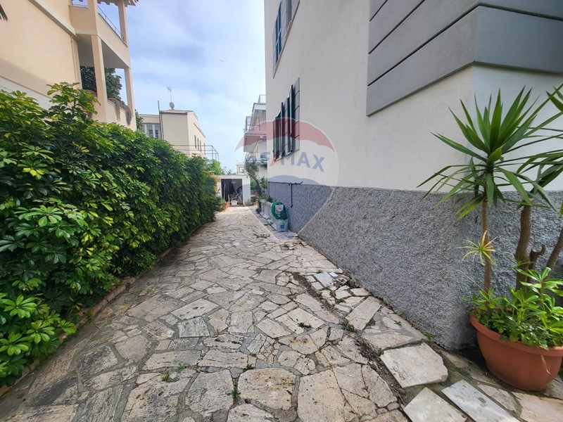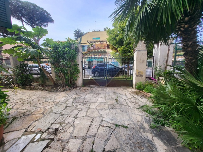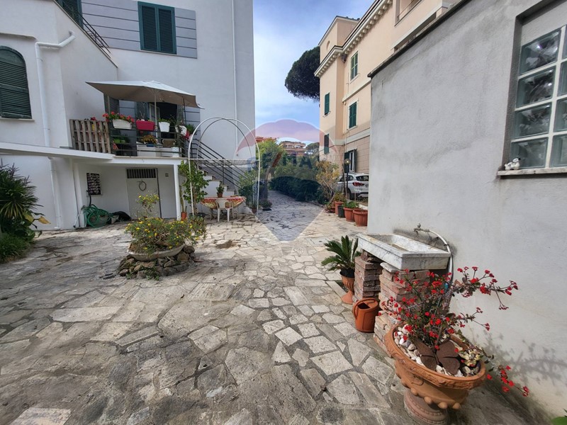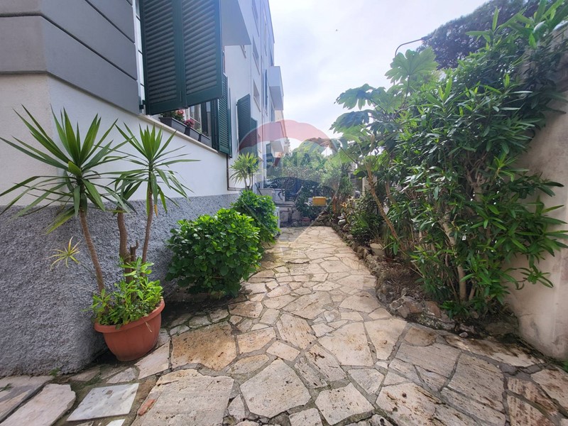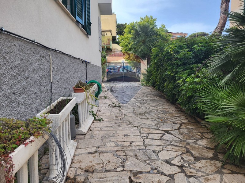 Appartamento di buona metratura composto da ingresso, salone triplo con camino doppio lato, cucina abitabile, due camere, bagno ed un ripostiglio attiguo che potrebbe diventare un secondo bagno. Un terrazzino abitabile ci permette di vedere uno scorcio di mare e grazie ad un ampio giardino di circa 350/400 mq. con cancello carrabile. L'appartamento fa parte di una palazzina degli anni 30, appena ristrutturata ed impreziosita con il cappotto termico.