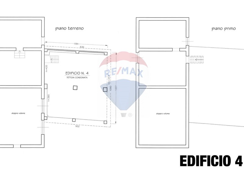 - Edificio 4, magazzino con doppi volumi, superficie 118 mq con annessa tettoia condonata di ulteriori 120 mq. (possibilità di cambio destinazione d'uso)