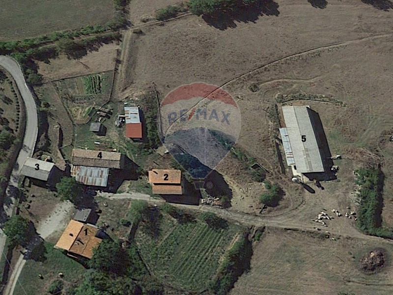 I quattro edifici insistono su quella che possiamo considerare un'aia, mentre leggermente distaccata troviamo l'edificio 5, una stalla di 380 mq. (possibilità di cambio destinazione d'uso)