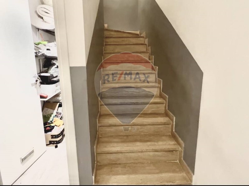 La scala conduce al primo piano, dove si trova una spaziosa Camera da Letto dotata di Bagno Privato, garantendo comfort e privacy.