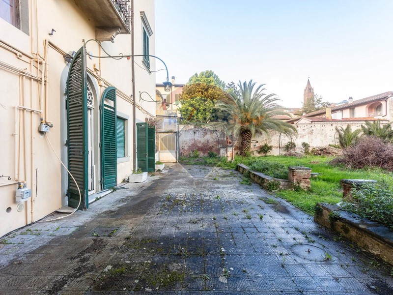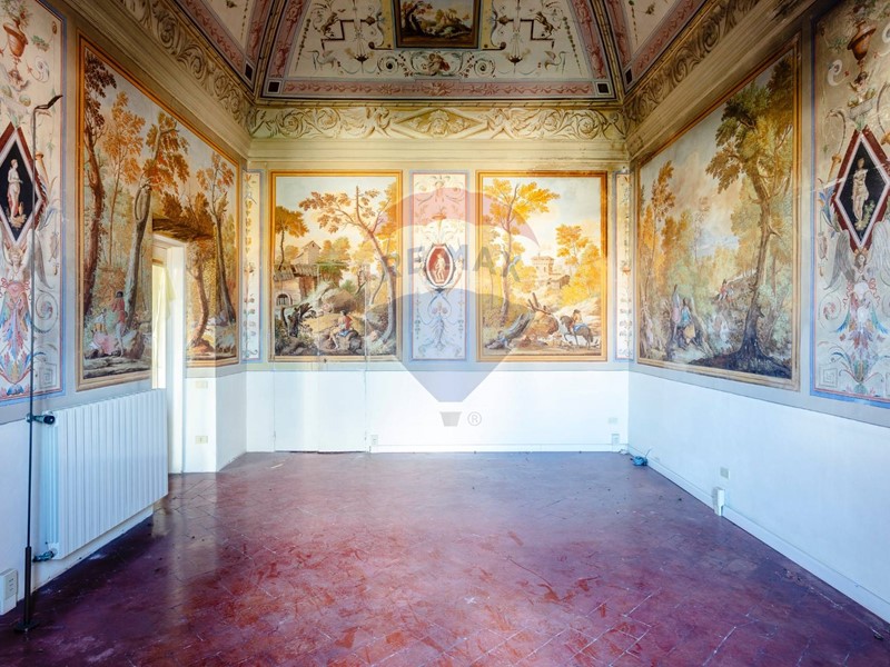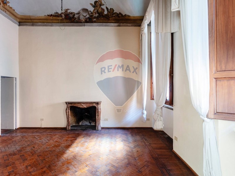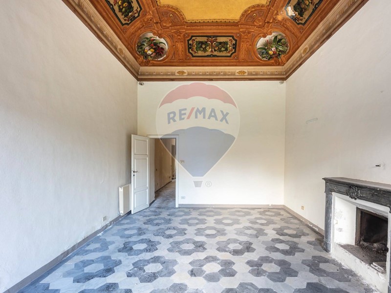 Costellato di ampissimi saloni affrescati, e fornito di una quantità di caminetti fuori dall'ordinario, ledificio si sviluppa su tre piani fuori terra: piano terra (ad uso ufficio), primo (con ammezzato) e secondo entrambi ad uso residenziale, per una SUL complessiva di 1240 mq, oltre a un totale di 1100 mq di area esterna. Il piano terreno come detto ospita un prestigioso ufficio di 504 mq catastali, perfetto per chi desidera un ambiente di lavoro dal fascino ed eleganza senza tempo. Ai piani superiori, raggiungibili tramite imponenti scalinate, si trovano cinque unità immobiliari; al primo piano, due appartamenti di 331 mq (+ 44 di piano ammezzato) il primo e 109 mq il secondo. Al piano secondo e ultimo, altre 3 unità immobiliari, appartamenti con superfici di 99, 120 e 176 mq. Tutti gli ambienti sono impreziositi da soffitti altissimi e pareti affrescate, che raccontano con i loro dettagli la raffinatezza dellepoca. Gli ambienti sono ampi, luminosi, ricchi di elementi depoca che conferiscono uneleganza senza pari. I caminetti originali, disseminati in tutta la proprietà, aggiungono un calore autentico, mentre lo sguardo si perde tra le decorazioni pittoriche e limponente architettura.
