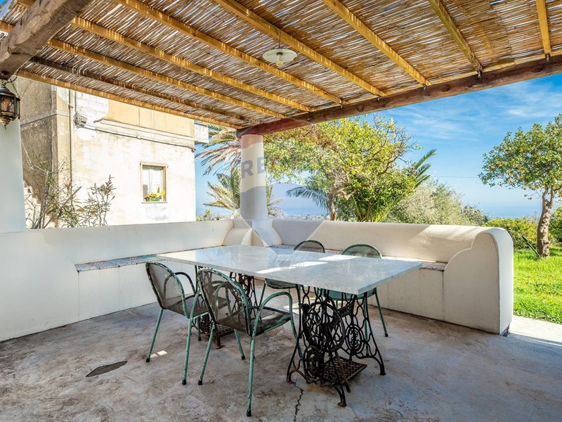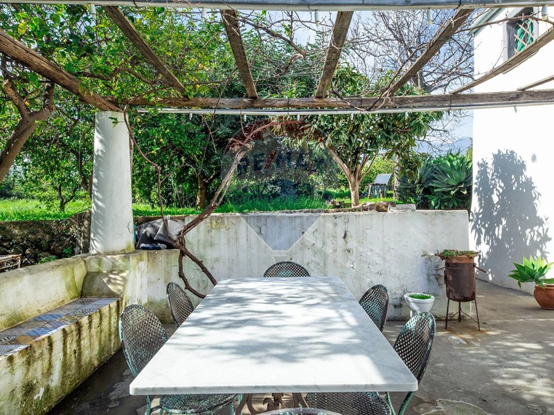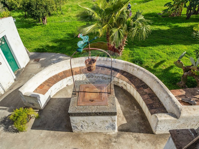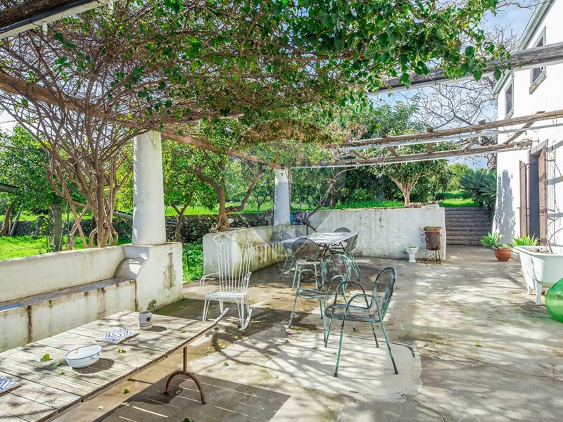 Varcando il cancello d' ingresso la piccola strada in salita si apre su uno scorcio dell' ampio terreno di circa 15.000 mq che accoglie coltivazioni di viti, agrumi e ulivi e che cinge l' immobile dai confini neutri e lo incornicia in un esplosione di colori .