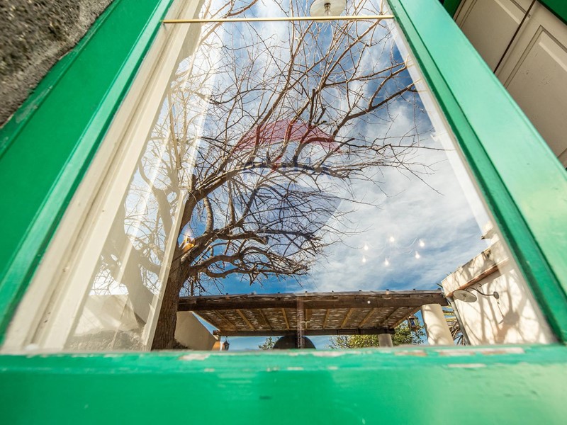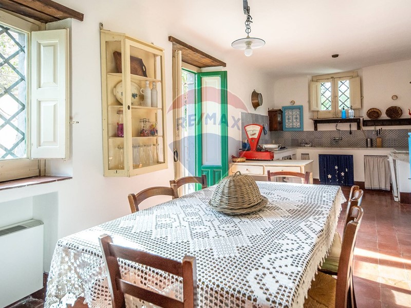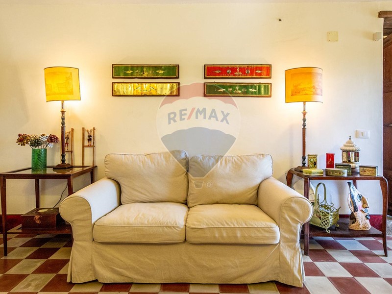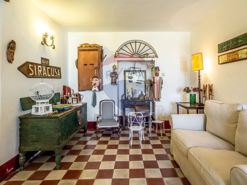 L' immobile all' ingresso presenta una cucina e un salone caratterizzate dai colori pastello degli elementi di arredo in stile siciliano che ben si armonizzano con le cementine antiche che formano un tappeto a scacchi rosso-granata e crema che accoglie e accompagna il passo.