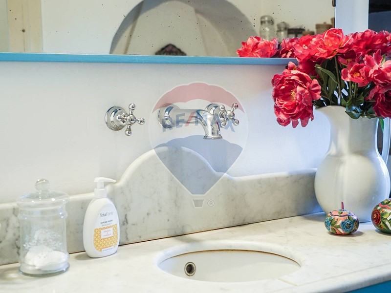 Nella parte superiore dell' immobile dalla zona living si accede alle due bellissime e luminose camere, una delle quali con affaccio su terrazza con vista mare, ed un bagno in stile liberty che richiamano i colori pastello della cucina e del salone e dove ogni elemento sembra aver trovato il suo significato in relazione all' altro evocando una dimensione fiabesca.
