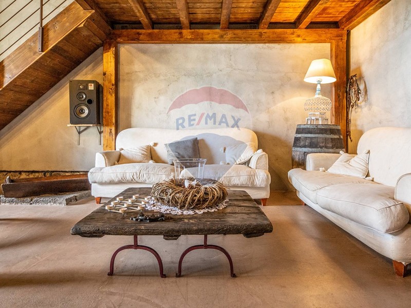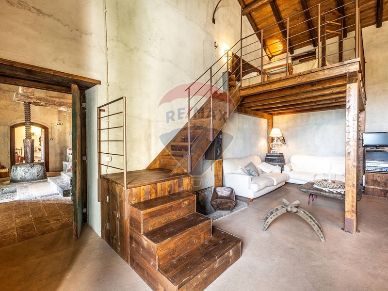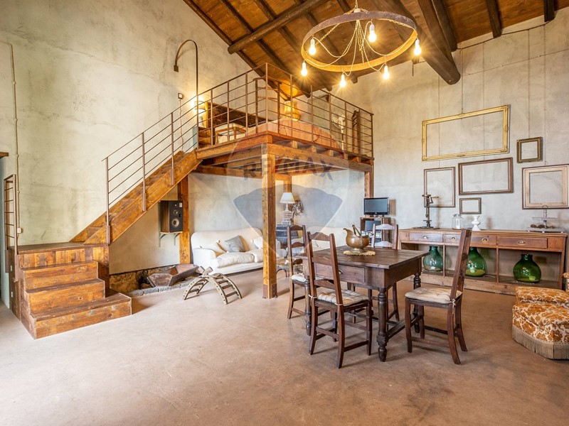 In questo grande spazio aperto la grande tavola e la zona living nella parte superiore dell' area del palmento sembrano essere predisposte alla convivialità grazie alla perfetta simbiosi degli spazi e all' ottima luminosità conferita dall' accordo ottimale fra luce solare e luce artificiale che esaltano perfettamente i particolari degli oggetti da ornamento.