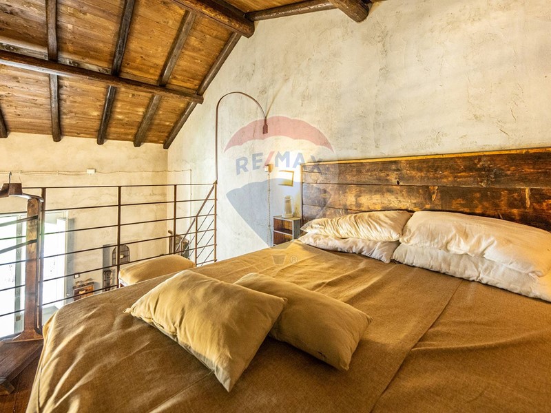 Sul lato destro dell' immobile trova ubicazione un altra ampia sala che si costituisce come vera e propria abitazione indipendente con una zona notte soppalcata, un ampia zona ricreativa, cucina e bagno, che senza soluzione di continuità richiama le sensazioni della sala del torchio con le cromature del legno e delle ampie pareti color cenere il cui contrasto viene valorizzato dagli elementi color oro e dalla calda luce gialla.