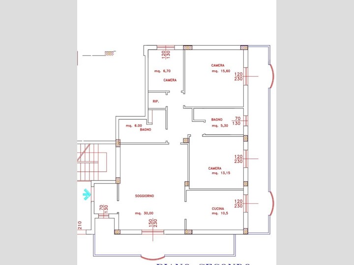 Composto da ingresso su piccolo disimpegno, ampio salone , cucina abitabile, tre camere , due bagni, balconi di mq. 40.